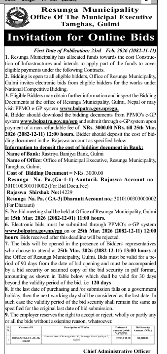 सार्वजनिक खरिद/बोलपत्र सूचना